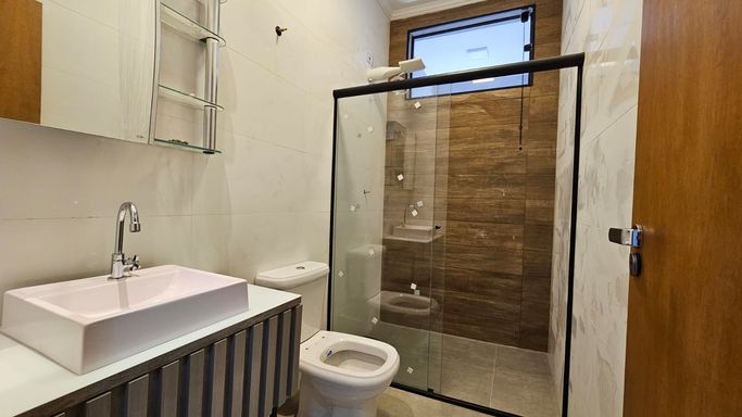 ConstruΓdo com alto padrΓ£o de qualidade, possui fachada diferenciada, porta de madeira, sala com pΓ© direito alto e luminΓ‘rias com muito requinte, porcelanato em toda casa, cozinha com pia e bancada em granito, banheiro com box de blindex, acabamento impecΓ‘vel, portΓ£o eletrΓ΄nico, quintal com mais de 400mΒ² nos fundos!